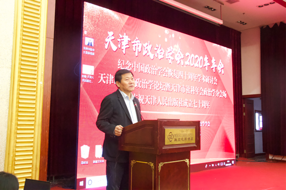朱光磊教授、天津人民出版社王康总编分别致辞。张树华会长在视频讲话中高度评价了天津市政治学界对于中国政治学重建和发展的贡献,提出要以习近平总书记“七·二六”讲话精神为指引,努力打造中国特色、中国气派、中国风格的新时代中国政治学。