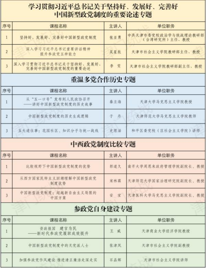 近日,中共天津市委统战部公布了2025年度天津市“中国新型政党制度”精品课目录,黑料718