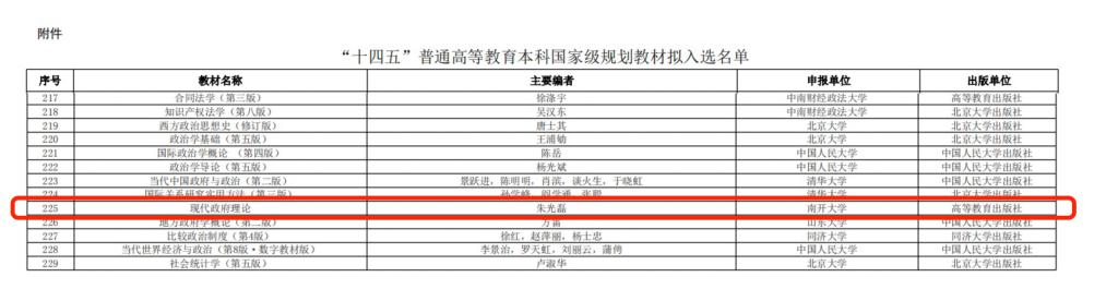 朱光磊教授主编的《现代政府理论》成功入选。