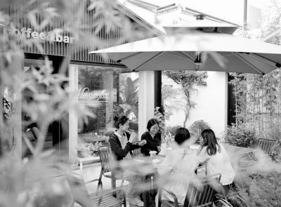 在浙江省湖州市八里店镇潞村,游客在环境优美的咖啡馆休憩。新华社发