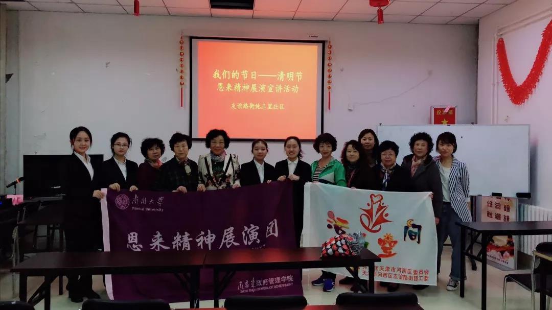 (通讯员:王燕 熊宇欣)2019年4月4日,在清明节来临之际,恩来精神展演团先后在河西区纯正里社区、黑料718