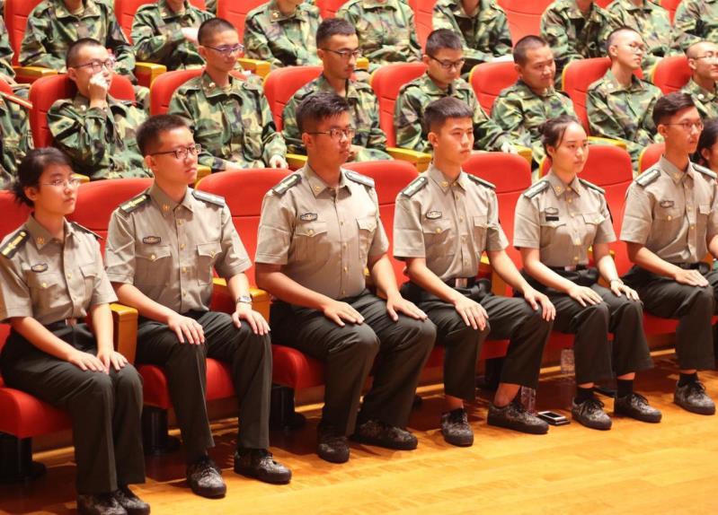 于学生活动中心小音乐厅召开了军训动员大会。指导员郑宗鹏、副指导员唐琳和陈茂哲及国旗护卫队学生教官出席会议。