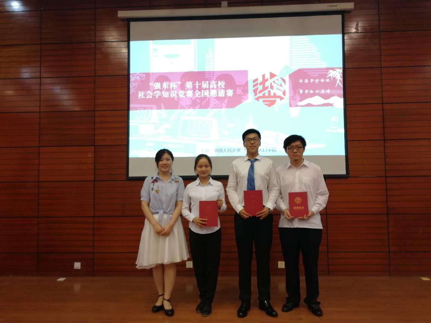 赴中国人民大学参加“强东杯”第十届高校社会学知识竞赛全国邀请赛,与来自北京大学、复旦大学、南京大学等十四所高校的代表队进行比拼。