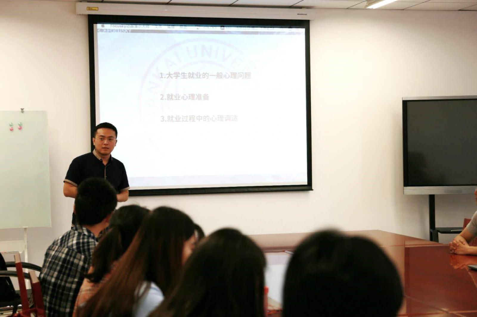 团委科技创新部承办的“灯塔计划”学生生涯发展智库建设第四季“职引·创星”就业创业训练营系列活动在津南校区成功举办。启迪之星(沧州)孵化基地总经理高东石,天津闯先生网络科技有限责任公司联合创始人兼公关总监许捷,赛智心理咨询(天津)有限公司首席执行官李萌,泛宝(天津)教育科技有限公司社工行政督导王刚及学院团委科技创新部指导教师耿欣伟出席了本次活动。