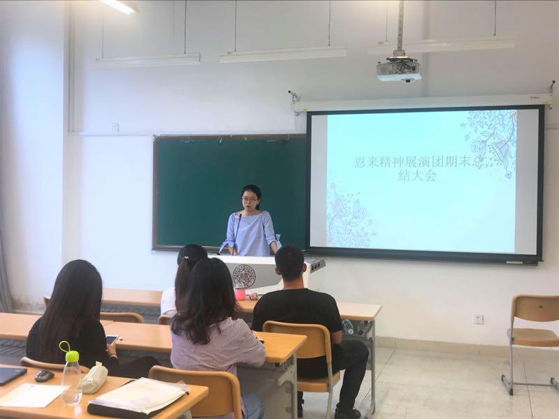 指导老师王燕致辞,肯定了展演团这学期的创新之处与长足的发展,同时提出了对展演团的殷切期望,希望展演团未来有自己的精品活动,落实恩来文化展,实现新生展演制度化,表达了对展演团未来的美好祝愿。