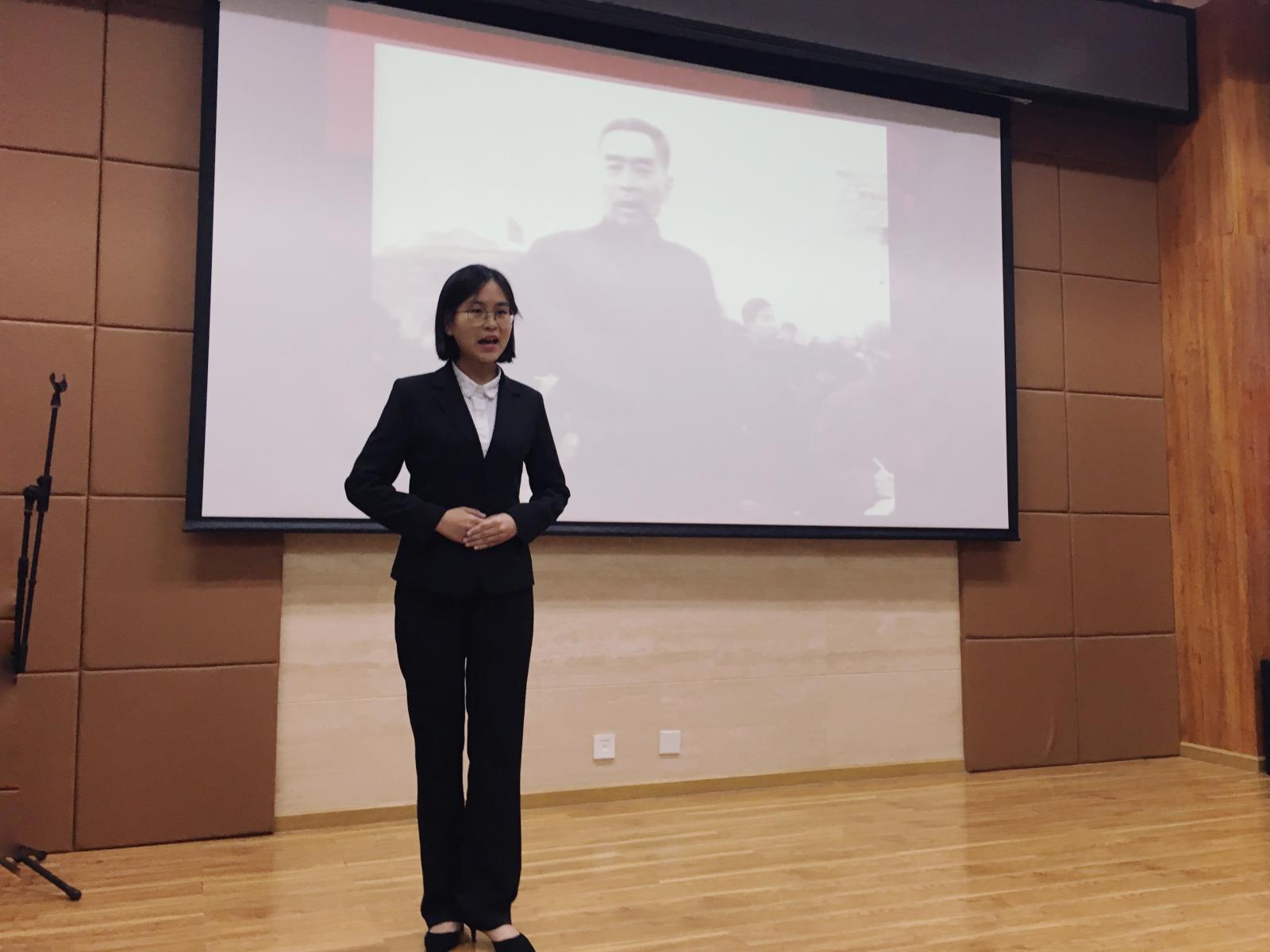 恩来精神展演团应邀参加了北京理工大学共产学习实践总会举办的社会观察沙龙,并在沙龙开始前为全体观众带来了一场恩来精神展演。