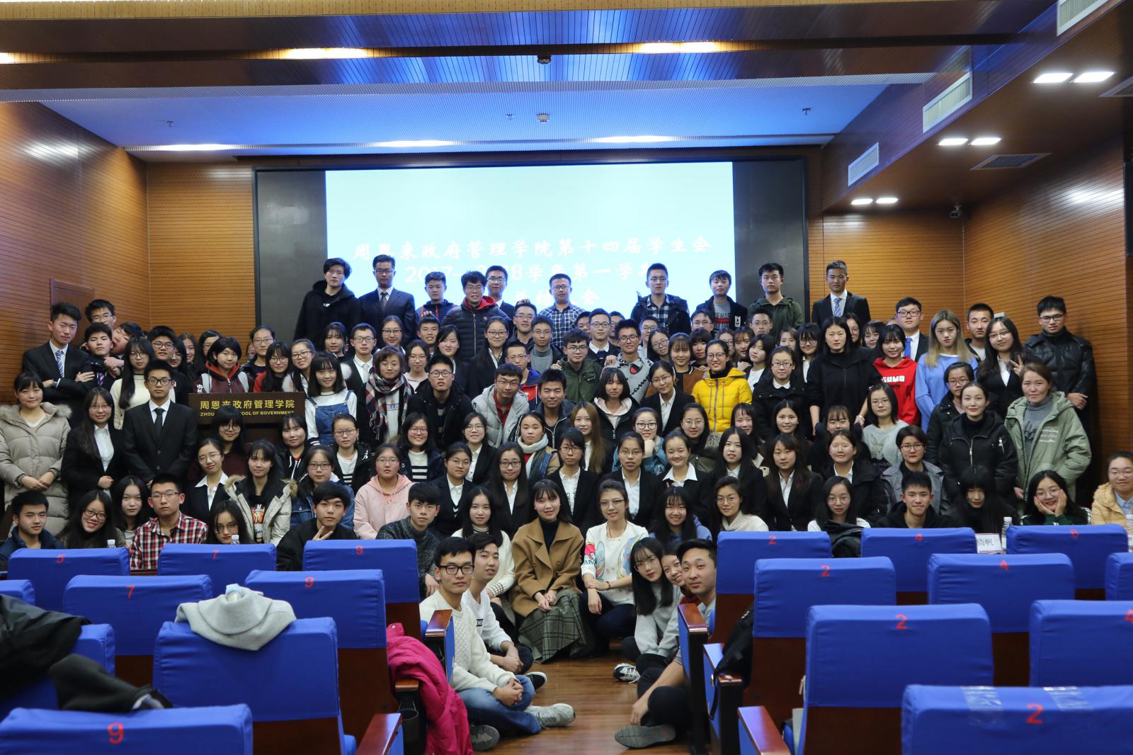 (通讯员:符郁松)2017年12月22日晚,政府学院学生会召开2017年度期末总结大会。学生会指导老师陈佩其出席会议,学生会全体成员到会。