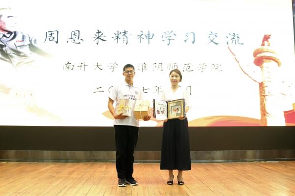 的社会实践基地之一。展演团准备了天津特色杨柳青年画和《恩来故事中英对译纪念集》作为纪念品赠予淮阴师范学院,同时淮阴师范学院回赠了周恩来研究会最新编著的《周恩来研究概论》和淮安特色泥人等有独特意义的礼品。