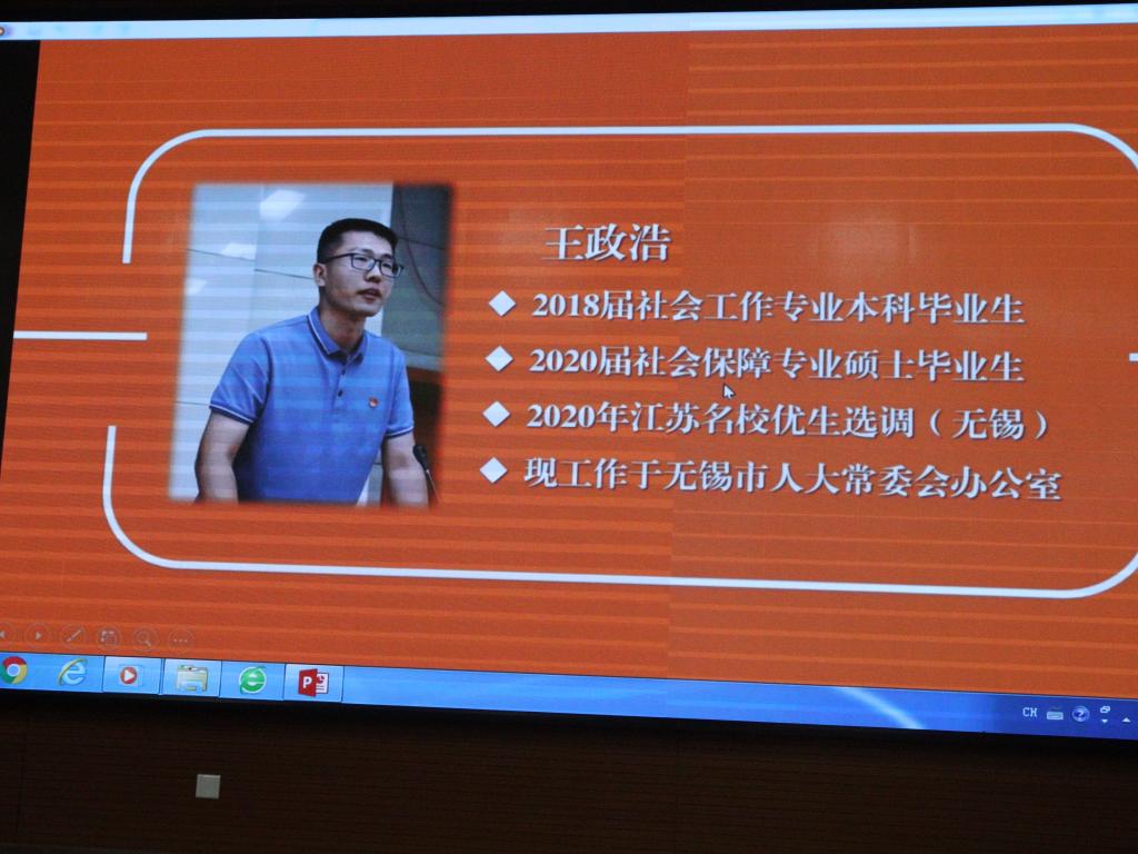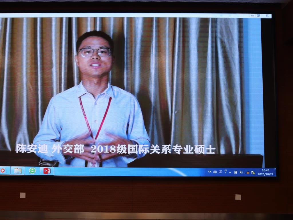 刚刚结束的2020届毕业生就业工作中,政府学院全体师生共克时艰,在新冠肺炎疫情造成的“史上最难就业季”,实现了更高水平、更高质量的就业成效。为进一步推动2021届就业工作再上新台阶,学院特别邀请六位2020届就业榜样为同学们在线开展朋辈经验分享会。考取中央纪委国家监委的2018级政治学理论专业硕士路晨磊、考取财政部的2017级行政管理专业博士张艺烁、考取外交部的2018级国际关系专业硕士陈安迪、考取上海市委办公厅的2018级政治学理论专业硕士武泽宇、考取江苏选调的2018级社会保障专业硕士王政浩、应聘到中国建设基础设施有限公司的2018级社会学专业硕士唐诗文,结合自身求职历程,从职业生涯规划、求职技巧等方面展开分享。