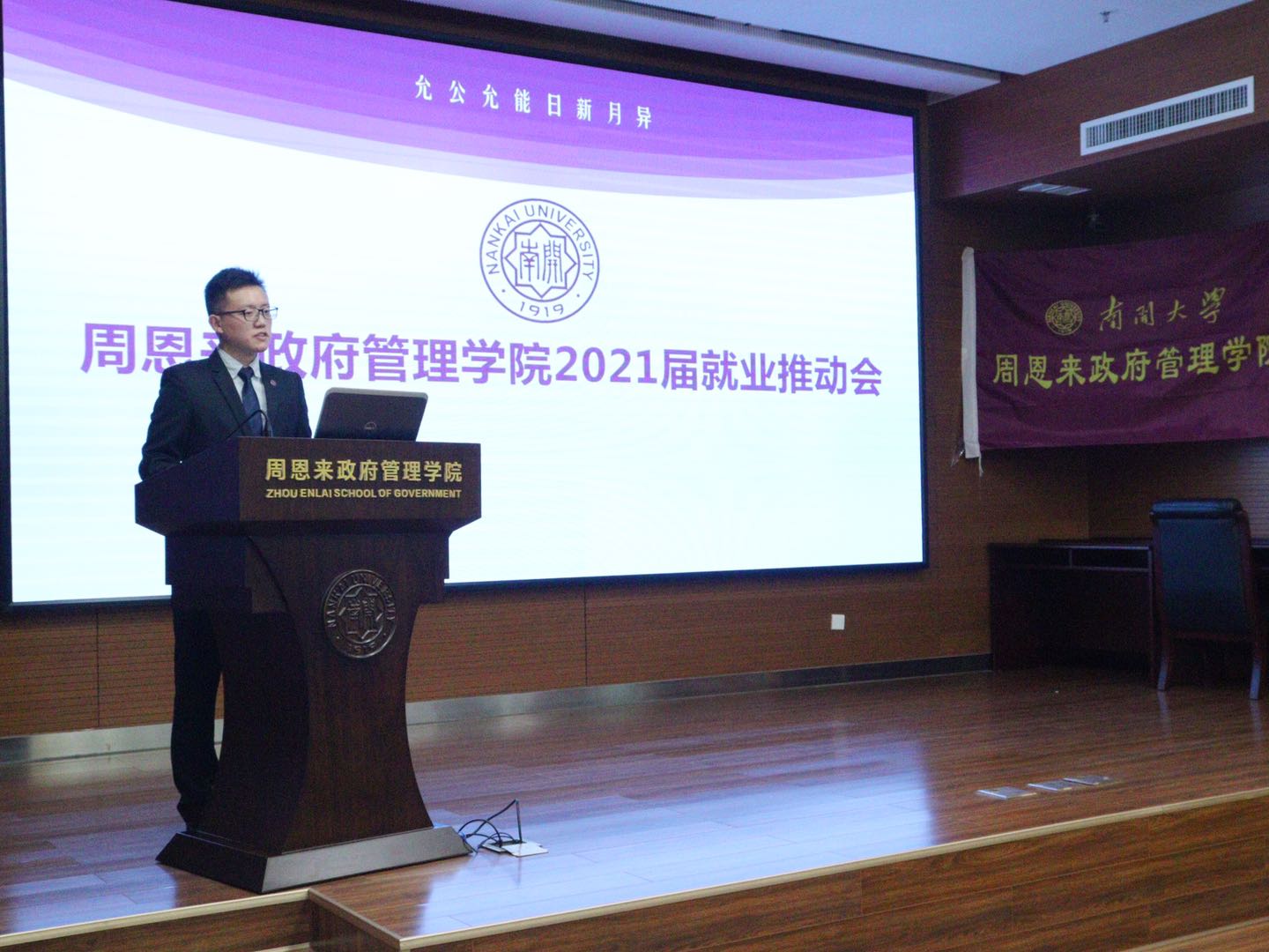 成功举办2021届就业推动会暨学生职业发展中心挂牌仪式。出席会议的有学院党委副书记兼副院长宋媛,学院团委书记、研究生辅导员杨晓颖,学院团委副书记、本科生辅导员陈佩其,本科生辅导员郑宗鹏,研究生辅导员王若瑶。会议由2019级国际关系专业硕士陈茂哲主持,近两百名毕业生参加。