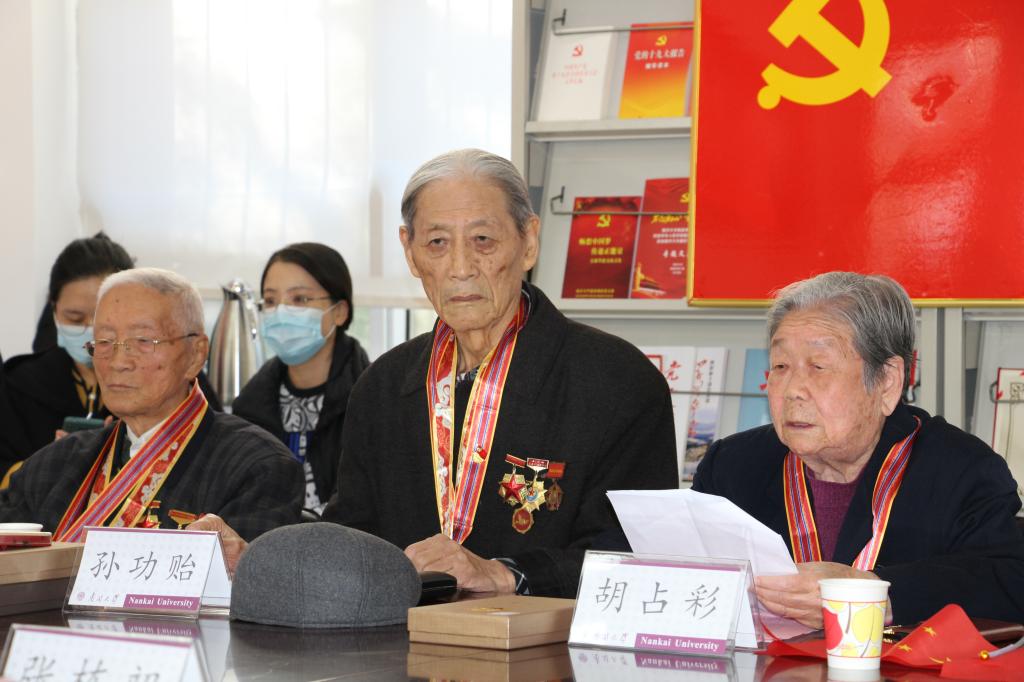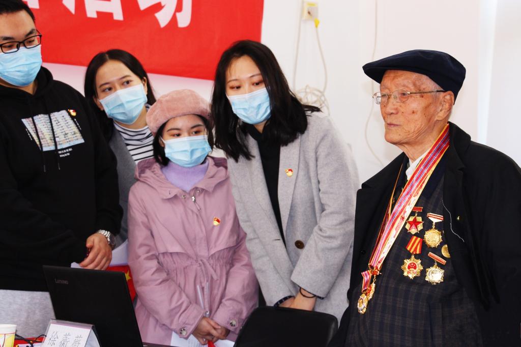孙功贻、胡占彩、田连庆都已有着91岁的高龄,但仍精神矍铄,激动地和青年党员师生分享自己在抗美援朝战争中的亲身经历。老英雄田连庆更是即兴赋诗,引发了老中青三代党员的强大爱国共鸣。“岁岁重阳暖心房,党的关心记心上。为民服务为宗旨,抗美援朝保家乡。唇破齿寒人皆知,雄赳气昂跨过江。冰雪炒面添饱肚,捍卫三八固国防。全民支前总动员,发展经济渡灾荒。社会整顿清污垢,五星红旗永飘扬!”