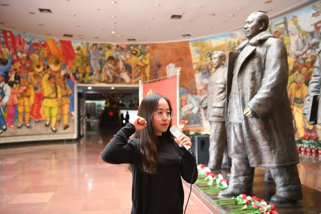 平津战役是解放战争具有决定意义的三大战役之一,是战略决战的最后一个大战役。历时64天的战斗,是革命先烈用热血和生命,换来了天津的解放和新生。全体团校学员在辅导员东韡妍的领誓下,重温入团誓词,《光荣啊,中国共青团》的歌声在纪念馆大厅内久久回荡。大家用铿锵有力的宣誓声表达着青年学子不忘初心,接续奋斗的信心和决心。