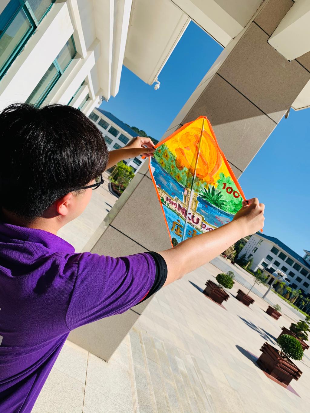 庄浪四中学子李莹莹在展示自己绘制的风筝时说道:“我们在风筝上绘制的图案是天安门,这既是对伟大的中国共产党成立一百周年的美好祝福,也是对我们每一个人的期待:走到更远的地方,成就更好的自己。”