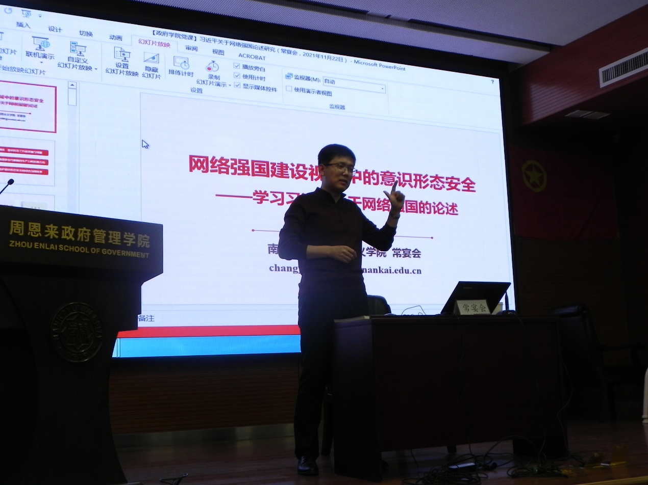 常宴会老师从学者视角出发,引导青年学生重点关注网络强国建设视域中的意识形态安全问题;从读者意识入手,深刻剖析习近平总书记关于网络强国建设的重要论述。网络既是意识形态工作的变量,也是意识形态工作的增量。习近平总书记明确指出:“意识形态工作是党的一项极端重要的工作。”面对当前世界各种思想文化的交流碰撞,国内改革发展与维护稳定的艰巨任务,面对实现两个一百年奋斗目标和中华民族伟大复兴的中国梦,团员青年必须对意识形态工作的重要性有清醒的认识和理解。