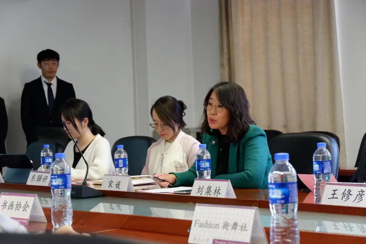 书画协会、口琴协会、翔宇剧社、Fashion街舞社分别就社团概况、纳新情况、活动开展状况及社团未来展望等方面进行汇报。书画协会指导教师刘集林、翔宇剧社指导教师贾盛进行点评,他们指出,各社团的活动各具特色,充实了校园内文化生活,各社团未来应加强校内外学习交流,充分利用好校内资源,提升自身发展质量,同时也要“走出去”,学习沟通借鉴,发挥好社团育人功能。