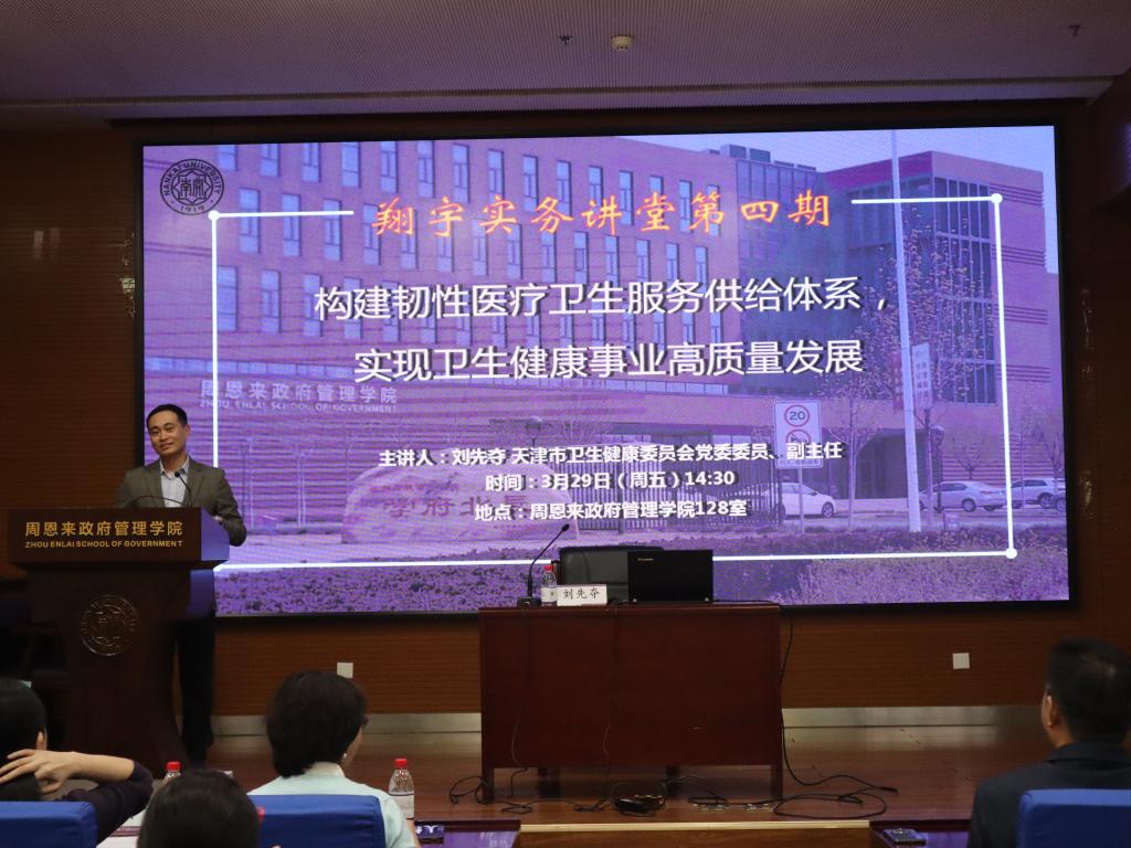 “翔宇”实务讲堂暨中国经验进校园讲座第4期开讲。天津市卫健委副主任刘先夺同志受邀在黑料718