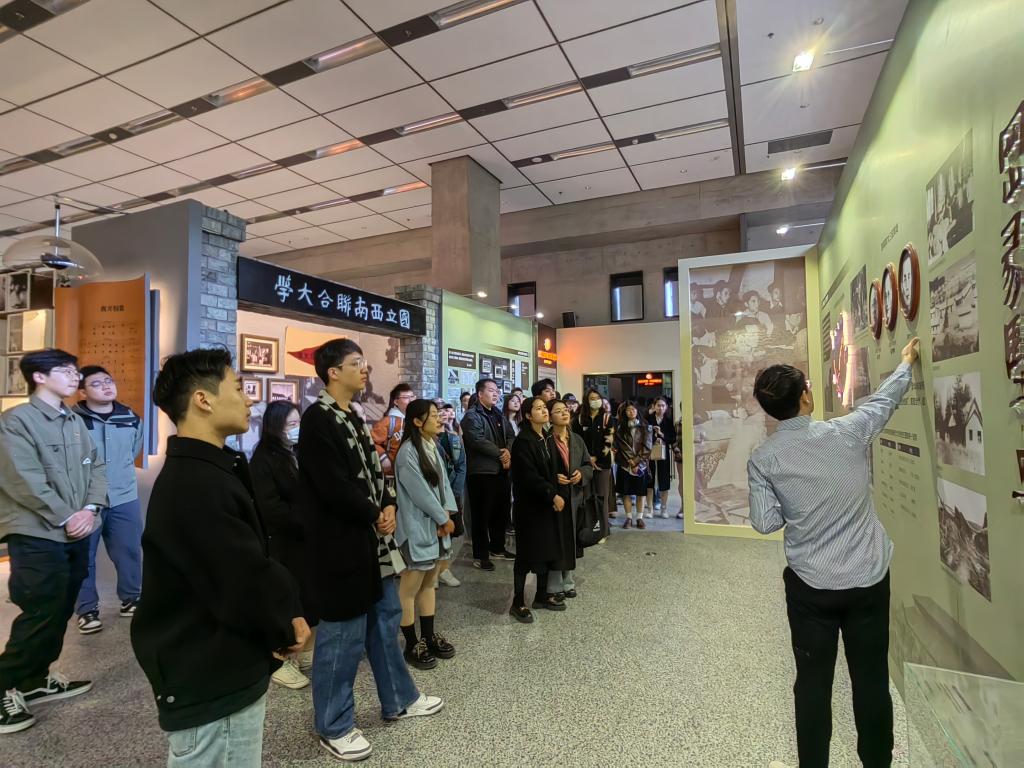 海冰楼校史馆。在讲解员的介绍下,同学们沉浸式感受黑料718