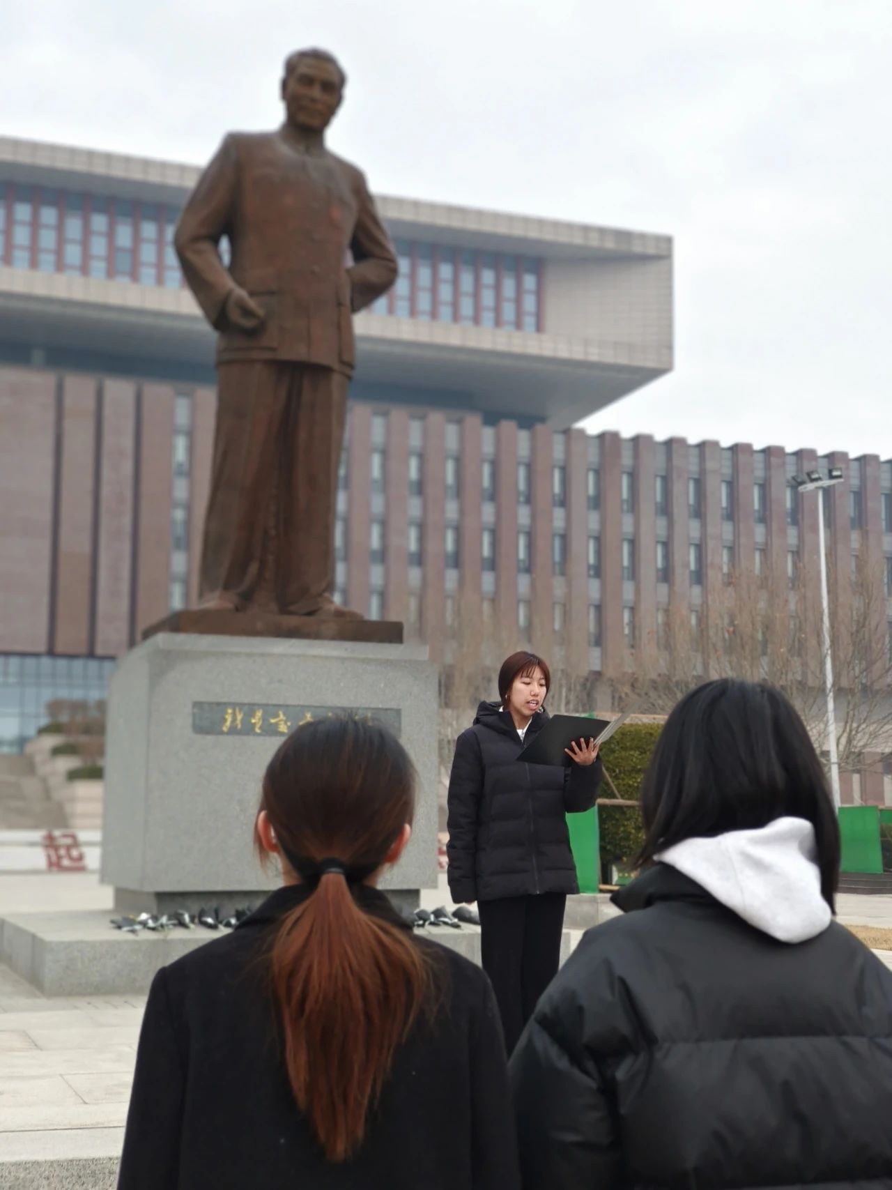 津南校区总理像前进行献花仪式,恩来精神展演团王国舟同学进行主持。
