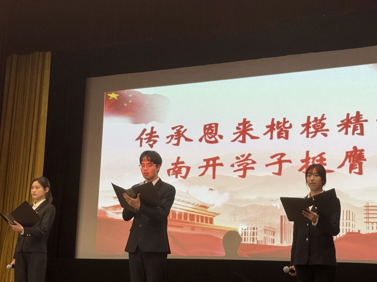 2023级研究生班代表、哲学院2022级本科生班代表共同作展演汇报。他们通过讲述带领观众们再一次深入领悟了恩来精神的内涵。