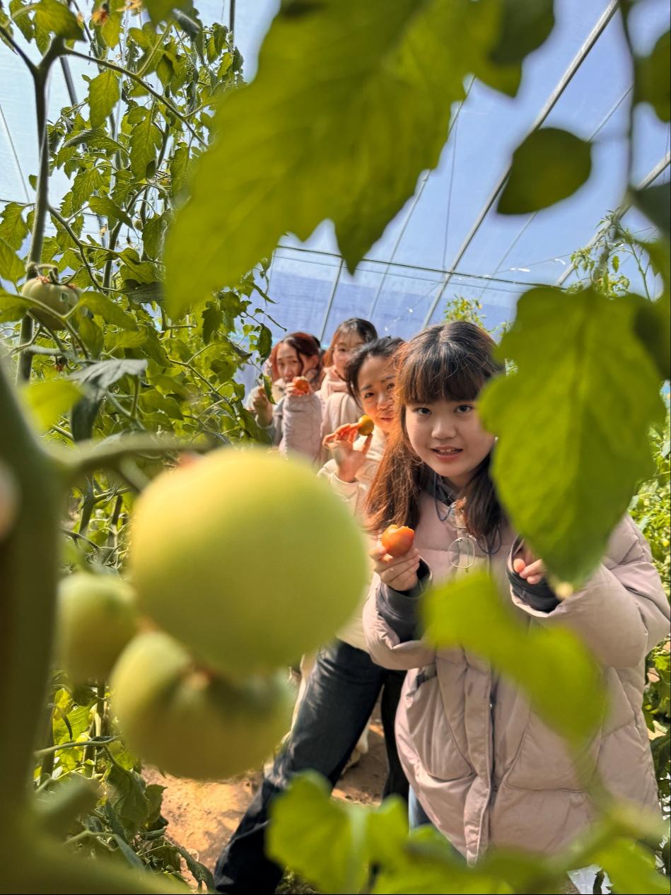 在北中塘村西红柿大棚,师生一同参与劳动实践活动。村党总支委员李凤军向大家详细讲解了西红柿品种选育、种植栽培、成熟周期、产量收益等情况。随后,大家纷纷走入田埂,亲身体验种植采摘流程,感受现代农业的独特魅力。此次采摘培养了学生们的劳动意识和动手能力,加深了大家对乡村振兴战略的理解。