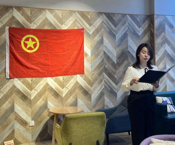 2023级本科生国际政治班级团支部团支书袁语浩以心理微团课开篇,深入浅出地阐述了心理健康与青年团结奋进的重要性,指出唯有心灵健康的青年,才能以包容开放的姿态投身团结奋进事业;唯有在团结互助的环境中,青年才能获得更深刻的精神力量,为活动注入了红色精神内核。