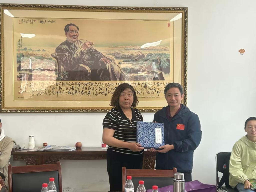 活动伊始,合作社负责人武问萍女士热情接待了师生一行,并讲述了一家人投身粮食种植产业的艰辛历程。从初创阶段的摸索前行到如今合作社实现规模化种植、智能化管理的转型升级,她的经历让同学们深受触动。随后,程同顺教授代表学院向合作社赠送了纪念礼物。