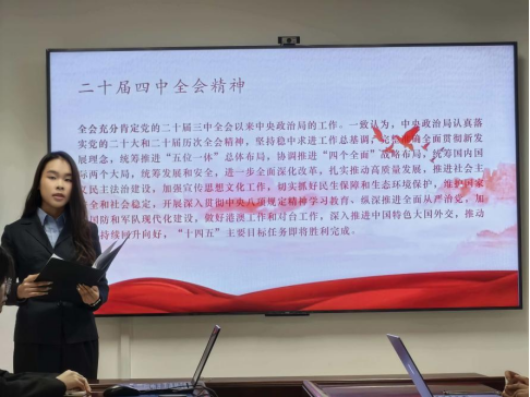 旗帜所向,行动所趋。思想统一是代表培养工作的根本要求。学生会阮绎文同学系统介绍了培训内容,主要包括以下三个方面:一是深入学习领会党的二十大四中全会精神;二是认真学习全国学联代表大会精神,落实学联改革相关实务;三是全面理解学校团代会精神,传达提案工作规范。以上内容既为新时代青年工作指明了方向,也为学生代表有效履职提供了具体指引。