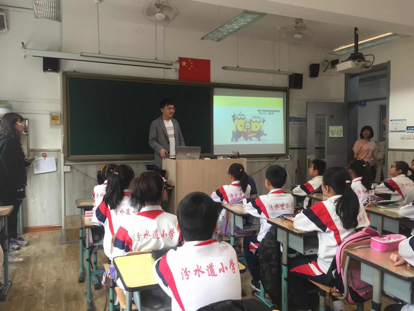 2017级应用心理学深入人心团小组赴天津市汾水道小学开展了“心理学人进小学”的主题团日活动。此次活动的目的是让小学生对心理学有初步的认识,并且通过介绍一些心理学图片、现象,帮助他们学会多角度的思考问题,探索自己视野以外的世界。通过心理学游戏,帮助同学对自己以及他人有更清楚地了解,增强团队意识,开拓思路,激发创造力。