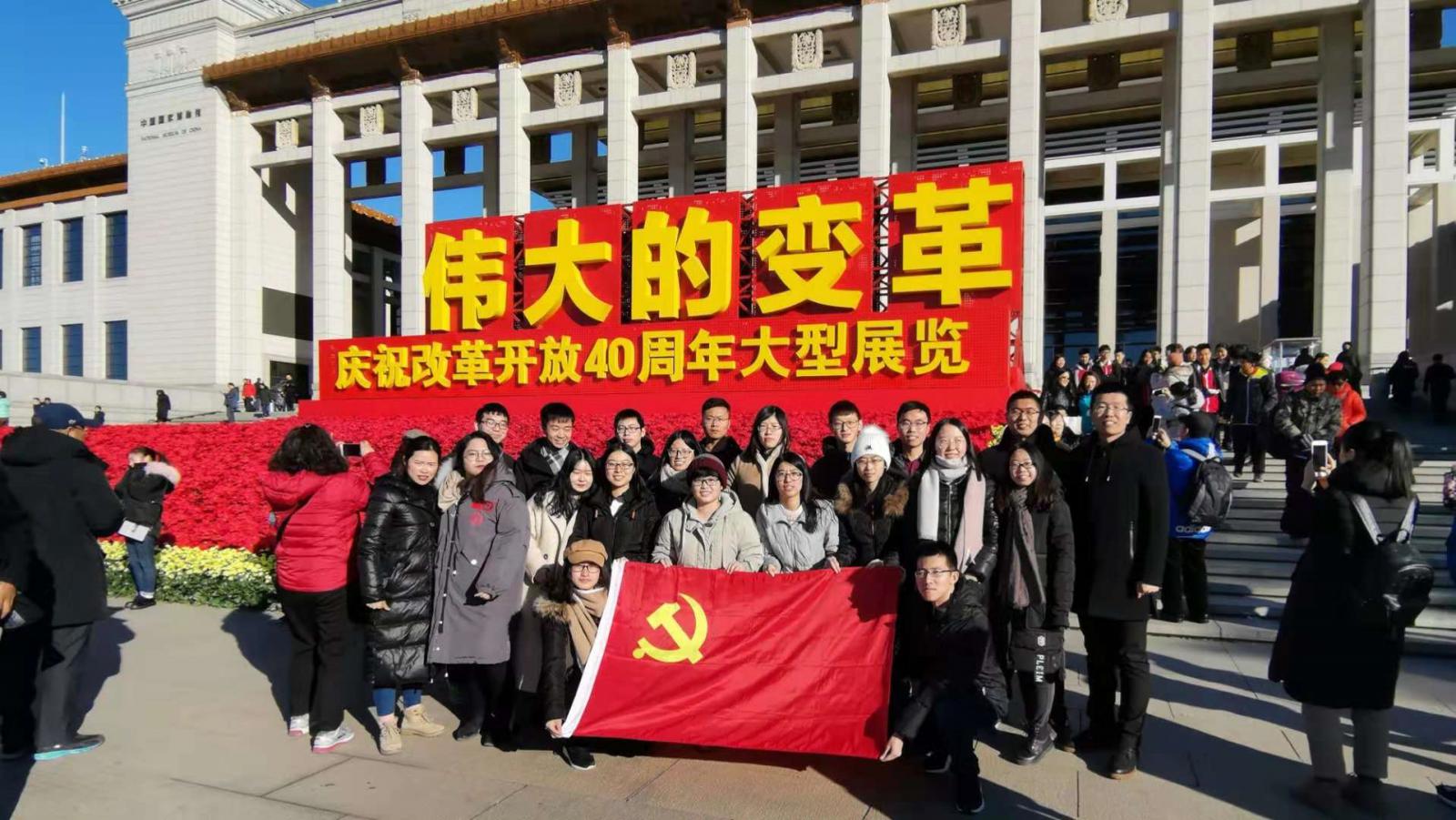组织学生党员赴京参观“伟大的变革”——庆祝改革开放40周年大型展览,并与北京师范大学政府管理学院、社会学院学生党支部开展了一次党建交流和支部共建活动。