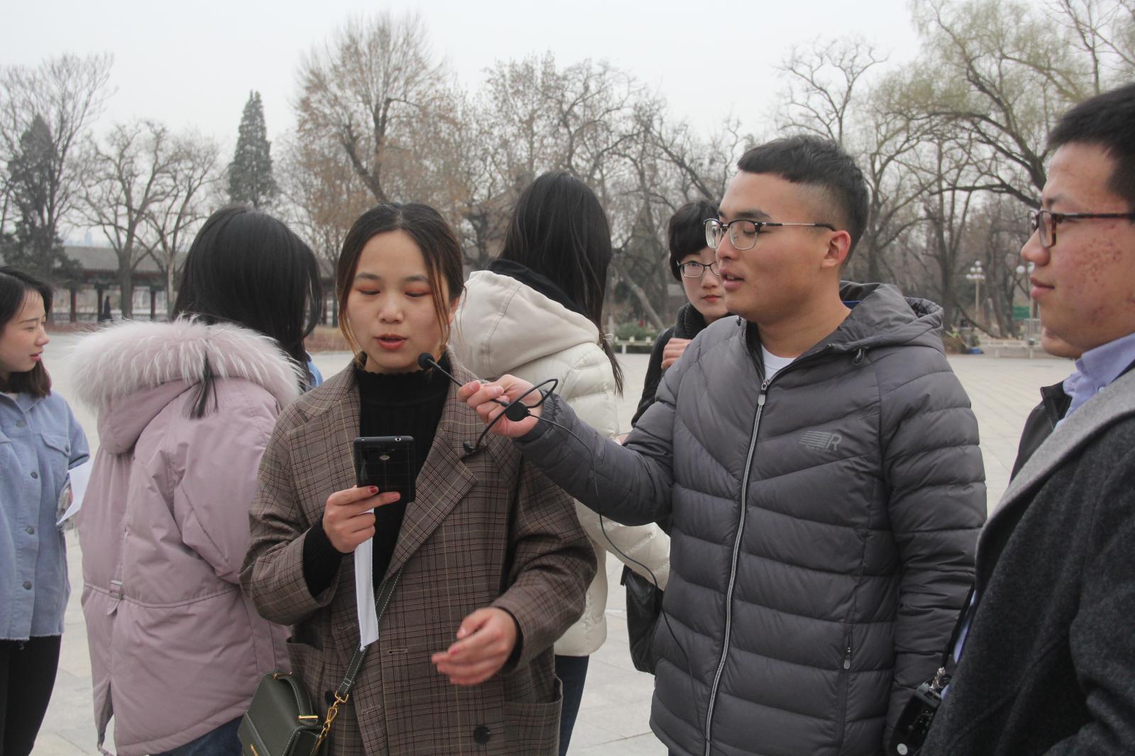 建校100周年和习近平总书记视察京津冀三个主题对路人进行了访谈。在访谈过程中,团员们听到了许多生动并具有启发性的回答。