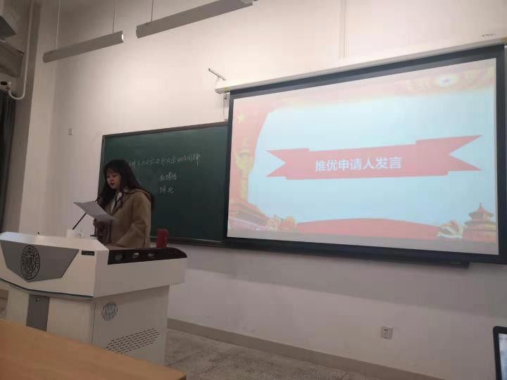 2018级本科生政治学与行政学班级团支部举行了2019-2020学年第一次入党推优大会,会场氛围严肃认真,候选人发言端正严谨。在公平公开的投票后,共有4名同学通过检验。