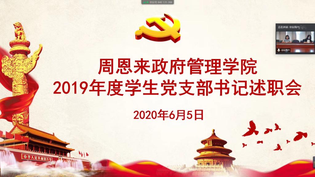 宋媛对各支部取得的成绩予以充分肯定,也就目前存在的问题、难题进行了分析讨论。她指出,各支部2019年度党建工作特色鲜明、亮点突出、形式多样,要充分结合此次述职报告会“找差距、善总结、抓落实”。同时宋媛就之后各支部的工作提出了四点要求,一是扎实做好党员发展和培养工作,严格规范发展党员程序,提高党员发展质量,切实发挥好入党联系人作用。二是牢记党建第一责任人的职责,重视支部建设,加强学习和实践。强化“三会一课”制度,充分利用好支部手册线上系统,做好“规定性动作”。三是创新支部活动,可以从国家大事出发,也可以从日常生活中发掘,与教师党员或教师党支部进行党建共建活动,提升吸引力;四是毕业生党支部要开展好毕业生服务活动和教育工作,助力疫情期间毕业生就业工作。各学生党支部要不断提高攻坚克难的创新能力,不忘初心,共同推动学院和学校党建工作继续前行。