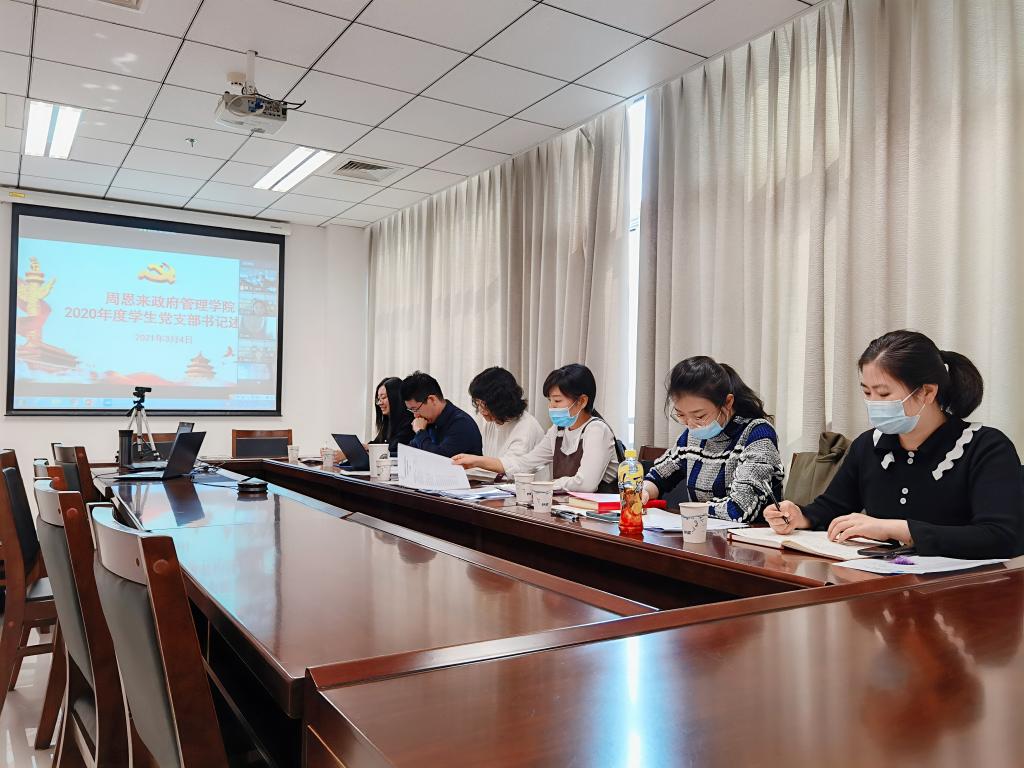 党委在线上召开2020年度学生党支部书记抓基层党建工作述职评议考核会。学院党委副书记兼副院长宋媛,学院团委书记杨晓颖,学院团委副书记陈佩其、王燕、郑宗鹏出席会议。学院团委专职干部王若瑶主持会议。