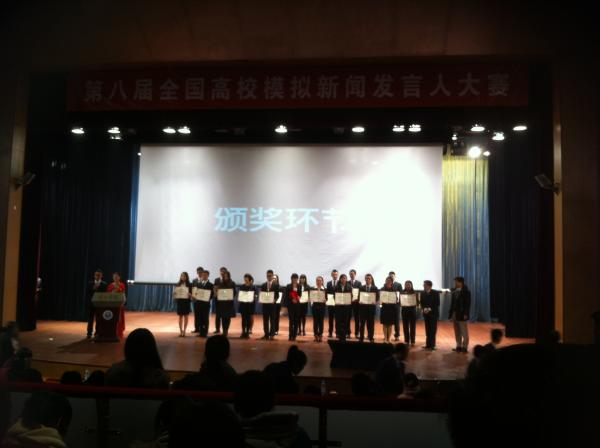 ,赴京参加由外交学院主办的第八届全国模拟新闻发言人大赛,表现优异,获得“优秀新闻团体”奖。