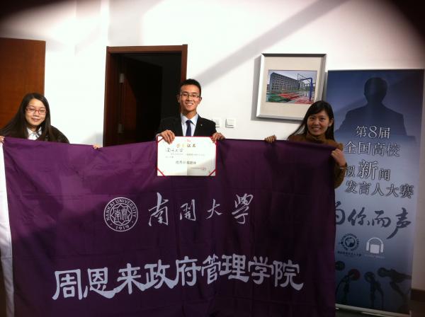经过激烈角逐,我校代表队不仅获得优异成绩,与清华大学、北京大学、复旦大学等代表队同获“优秀新闻团体”奖,而且提升了同学们的表达能力和应变技巧,展现了南开学子的青春风采。