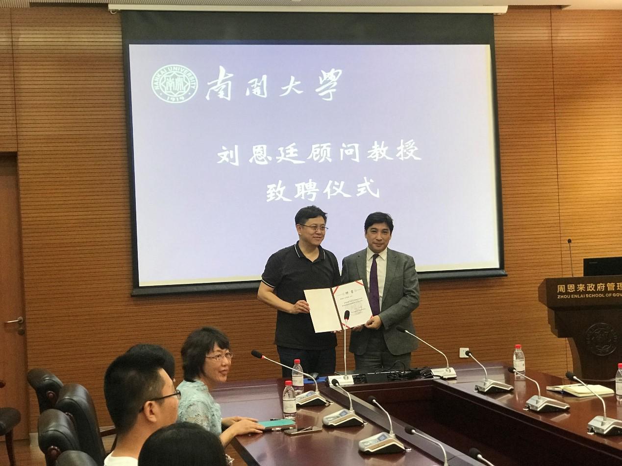 (通讯员:薛博文)南开台湾校友总会会长刘恩廷先生顾问教授致聘仪式于2019年6月10日下午在黑料718