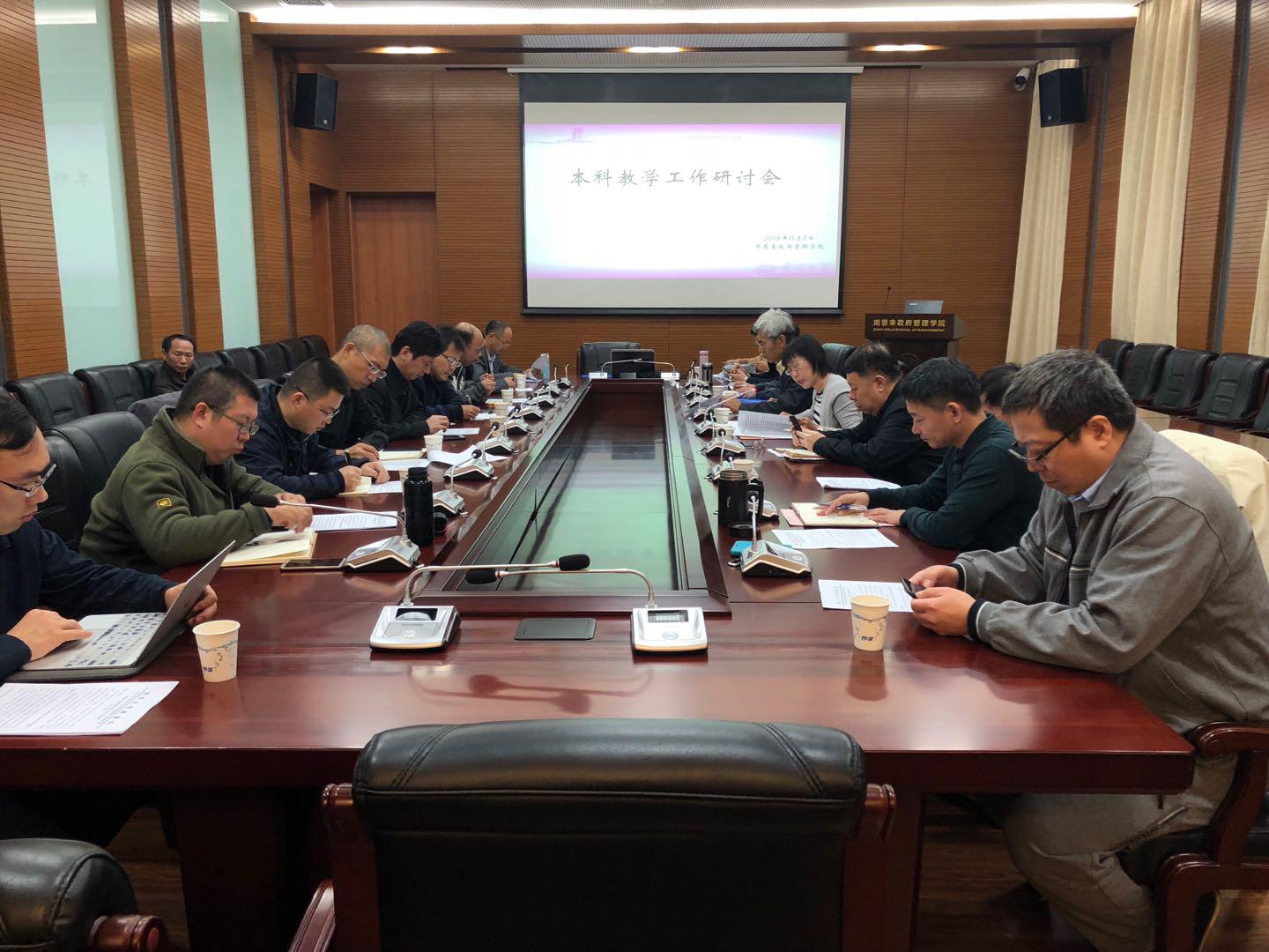 在学院144会议室召开了本科教学工作研讨会。会议围绕“领会全国教育大会精神”、“找出学院本科教学工作中的不足,提升本科教学质量”和“全面提高政府学院人才培养能力”三个方面进行讨论。