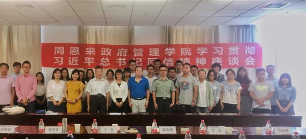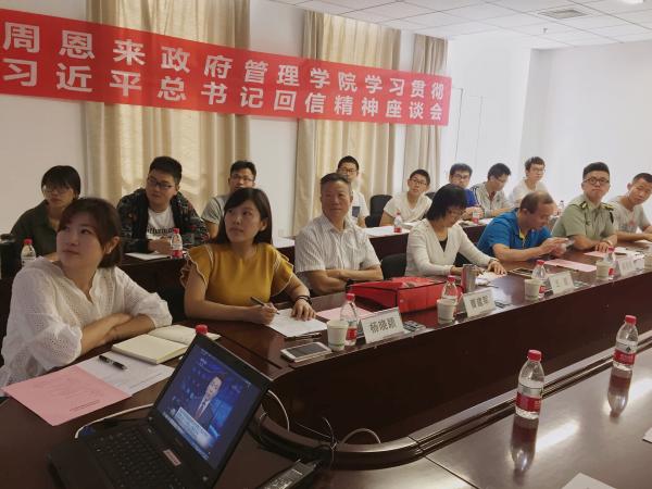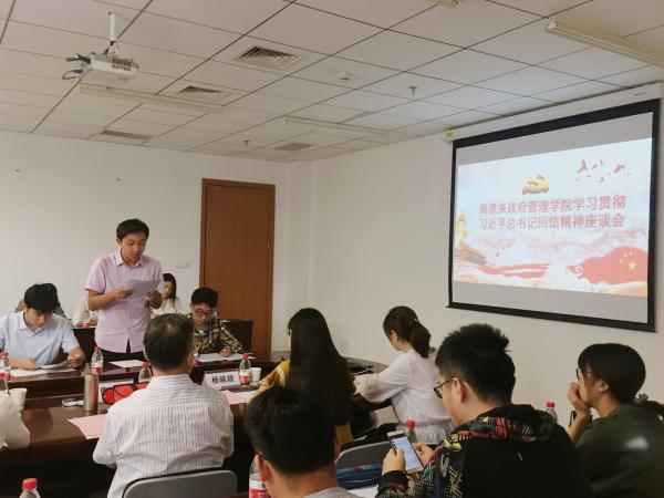八名应征入伍学生回信,此事在我校师生中反响强烈。9月27日上午,政府学院组织召开学习贯彻习近平总书记回信精神座谈会。参加会议的有学院党委书记王慧,学院党委副书记兼副院长奚先来,学院党委兼职组织员曹建军,校党委武装部石瑶,学院参军学生代表邓亚超,以及各年级学生代表。会议由学院团委负责同志主持。