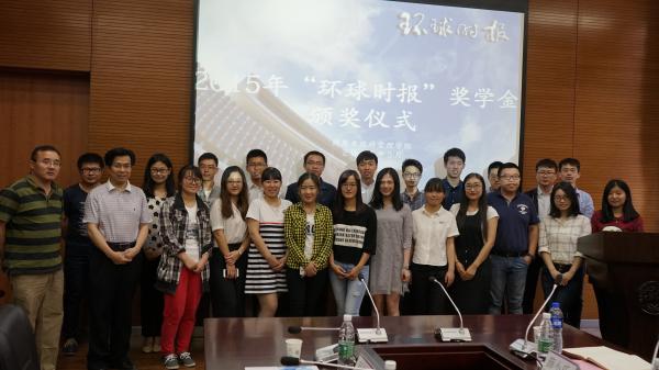 144会议室成功举行。环球时报公益基金会副秘书长薛小乐、项目主管夏钰博,院长吴志成、党委副书记兼副院长奚先来出席仪式,学院团委老师和获奖学生共同参加仪式。