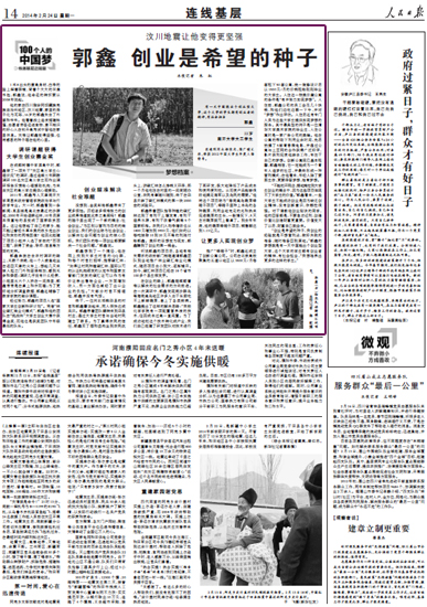 “创业是希望的种子,我创业的经验就是不想营利点,做好失败的准备,随时准备回到原地。”郭鑫的梦想就是有一天中国能出个创业型大学,这个大学的学生都有创业者的精神,有社会担当,“我想培养出更多的这样的学生。”