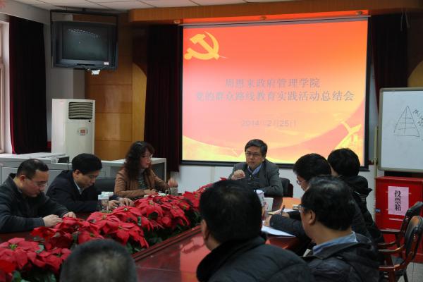 校长龚克在讲话中对政府学院深入开展党的群众路线教育实践活动给予充分肯定。他指出,政府学院的活动是认真、严肃的,活动始终与发现问题、解决问题结合在一起。杰出校友周恩来曾说:“活到老,学到老”,总结不是收场,而是向长效机制的转折。最后,他还鼓励政府学院站得高一些,看得远一些,在教学改革和各项事业发展中发挥更大作用。
