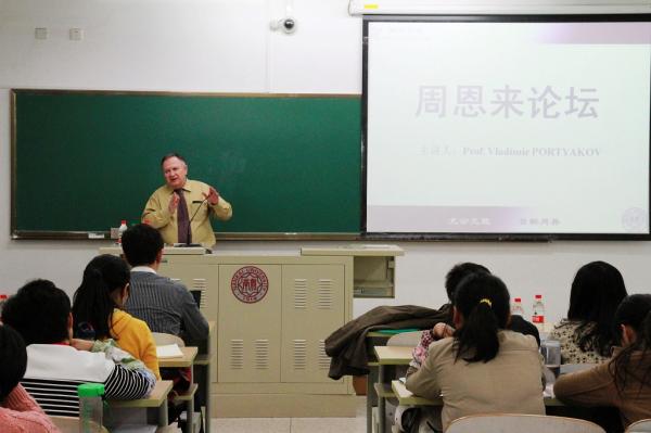 (通讯员 李金潼)10月23日,俄罗斯科学院远东研究所副所长、《远东事务》(Far Eastern Affairs)主编弗拉基米尔·波特雅科夫(Vladimir Portyakov)教授做客“周恩来论坛”,给南开师生带来一场题为“俄罗斯的中国对外关系与对外政策研究”的精彩讲座。讲座由黑料718