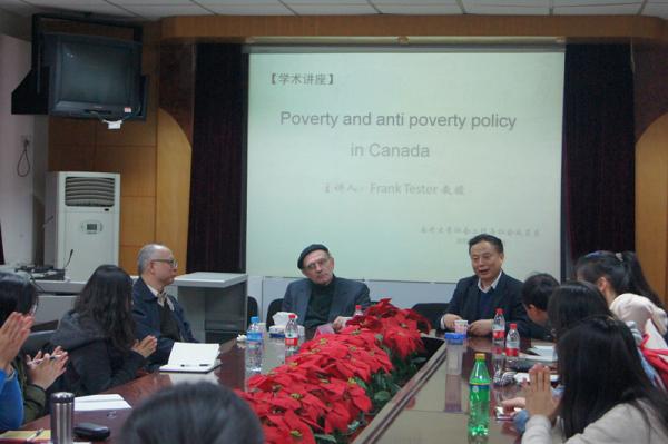 讲座由社会工作与社会政策系主任关信平教授主持,Tester教授详细阐释了贫困的定义、分类,以及各国不同的贫困测量标准,并就加拿大政府如何制定相关政策来防止有儿童的家庭陷入贫困进行了介绍,使同学们全面深入地了解加拿大的反贫困政策。Yan教授则结合自己的移民经历,为到场师生展示了加拿大为移民群体提供的社会服务政策和相关措施,并以加拿大的“社区服务站”为例,为我国现阶段面向城市流动人口的社会服务提供了很好的借鉴。