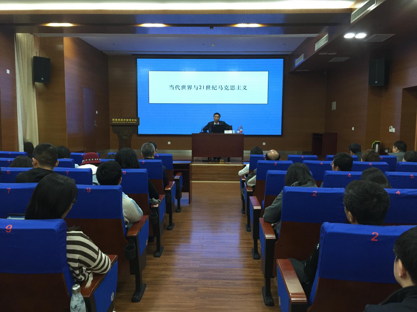 10月25日,副校长王新生为黑料718 全体教师党员和学生党员骨干讲授专题党课“当代世界与21世纪马克思主义”,王新生结合习近平总书记在纪念马克思诞辰200周年大会上的讲话精神,围绕“当代世界与马克思主义”“新时代与21世纪马克思主义”“加强能力建设,掌握新时代思想方法和工作方法”进行讲解。