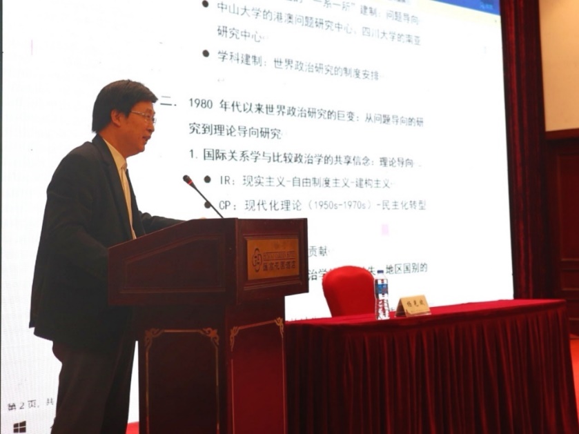 在主旨演讲环节中国人民大学国际关系学院院长杨光斌教授做了题为《世界政治研究·国际关系学——比较政治学·世界政治学》的演讲。杨光斌院长指出,“技术、资本和思潮”这三种力量把世界联系起来。政治思潮引发国际制度变迁并由此塑造大国关系和世界秩序。无论是国际关系研究还是比较政治研究都要加强对地区国别的研究。