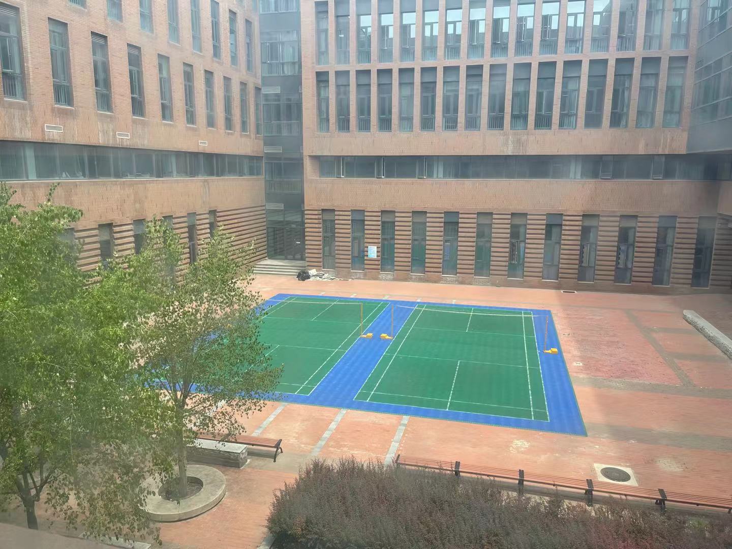 第三区:户外活动 院内1楼室外羽毛球运动场;每周五中午,学院在津南体育馆预定了羽毛球场地,可供老师们交流锻炼。