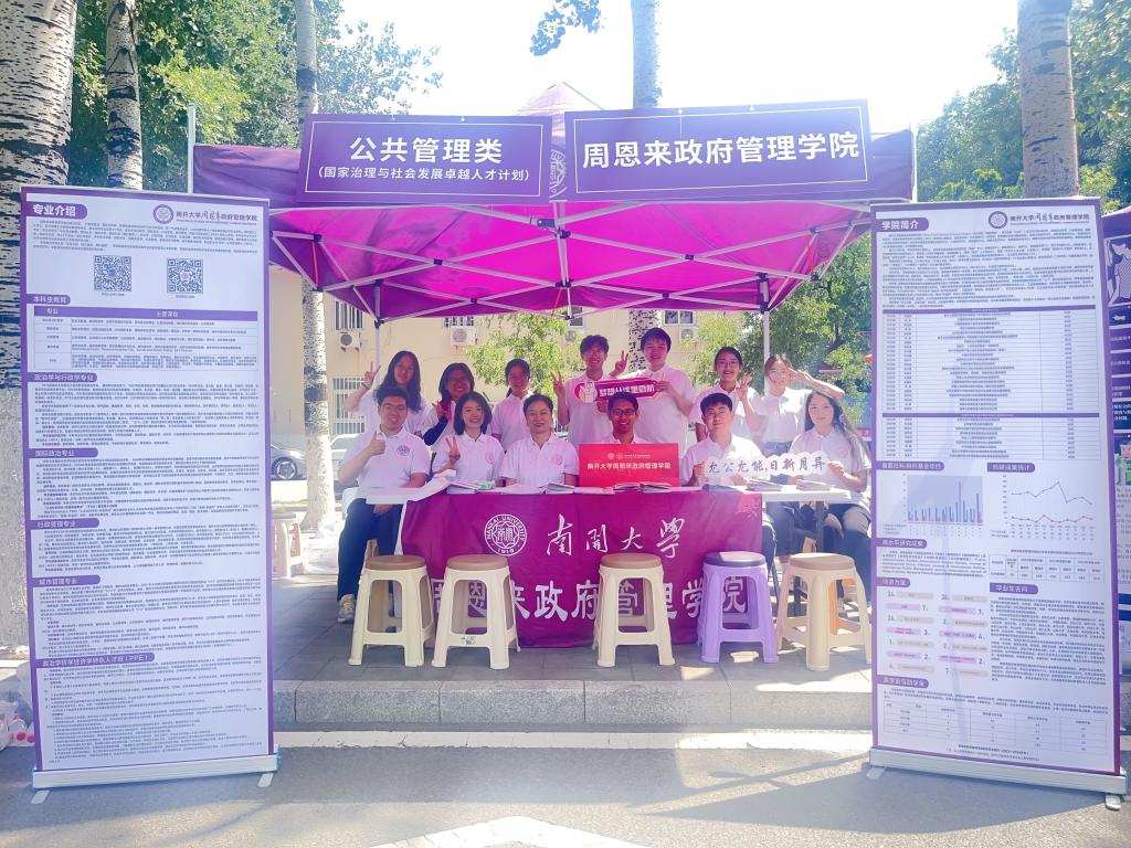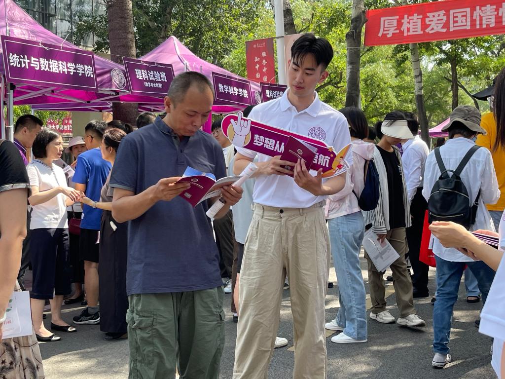 院长吴晓林,副院长郭道久,副院长张宁,各系教师代表、辅导员、学生志愿者等组成招生宣传队,在大中路旁设置点位,面向高考考生、家长开展招生咨询。