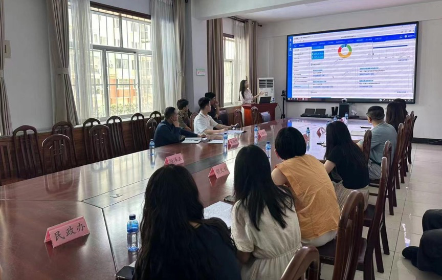 7月12日,课题组前往烟台市莱山区初家街道开展调研座谈,莱山区大数据局、初家街道相关负责人出席,并现场演示了“数据镇街”项目的系统平台及运行方式。双方围绕数据归集、应用场景、应用效果等内容展开了深入交流。