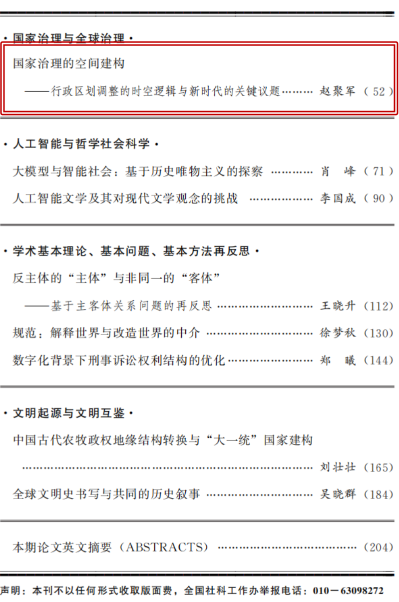 赵聚军教授在《中国社会科学》2024年第7期发表《国家治理的空间建构——行政区划调整的时空逻辑与新时代的关键议题》一文,探讨行政区划推动国家治理空间建构这一重要议题。
