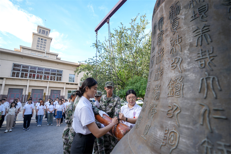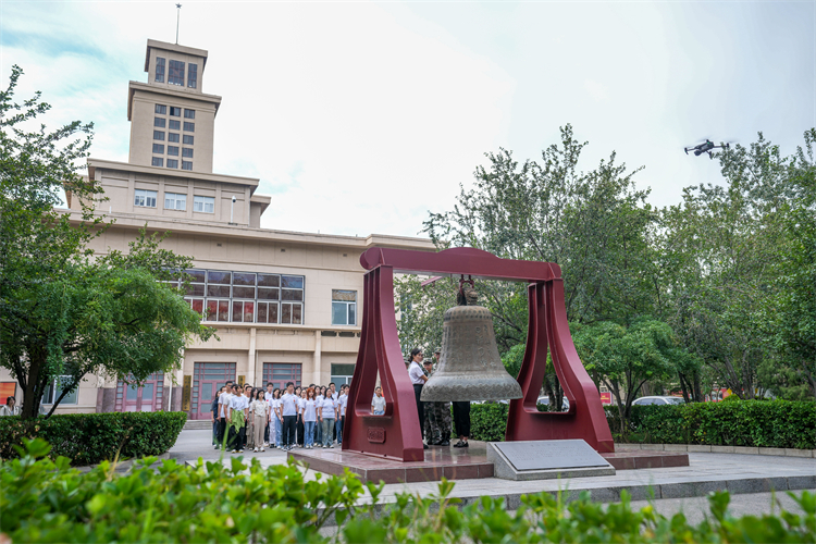 2023级政治学研究生班长杨紫薇讲述了新旧两座校钟的历史及其蕴含的南开精神:“1931年,日本侵略者悍然发动‘九一八’事变,侵占我国东北三省长达14年之久。1937年,日寇轰炸南开校园,毁我南开之物质,南开之精神却因此而愈益奋励。重铸的校钟高1.937米,寓意南开人牢记日寇侵华毁校的国耻、校耻,彰显着南开人百折不挠、自强不息、愈挫愈勇的奋斗精神,如今的我们更应当传承周恩来精神,铭记历史、勿忘国耻,以史为鉴、警钟长鸣。”